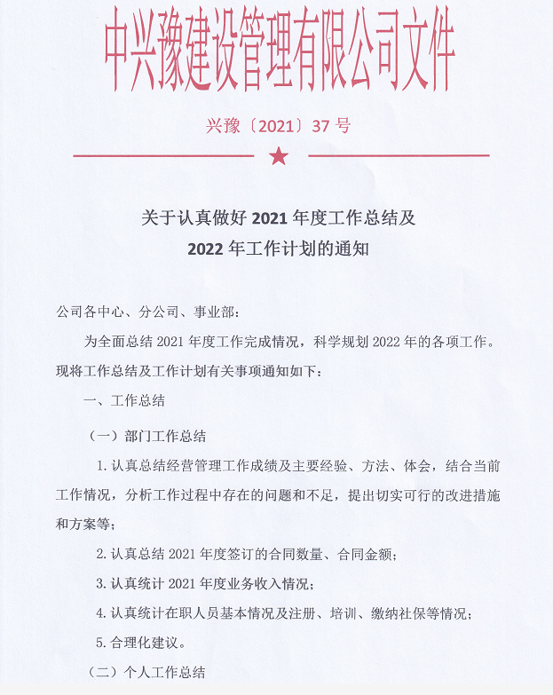 關(guān)于認真做好2021年度工作總結及2022年工作計劃的通知