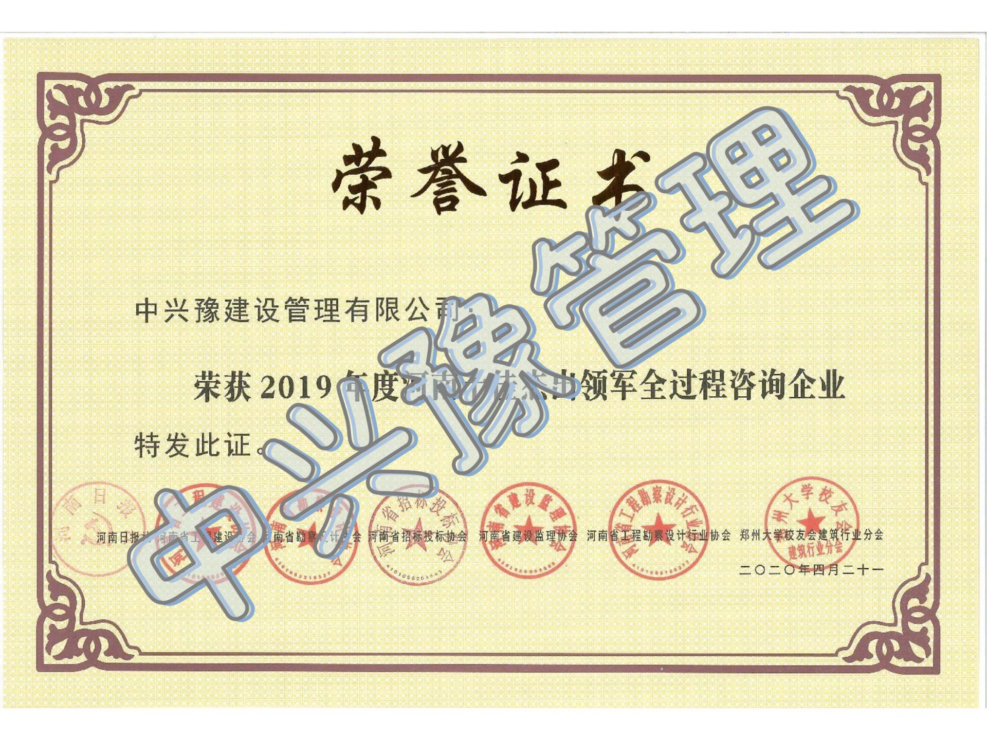 2019年度河南十佳杰出領(lǐng)軍全過(guò)程咨詢(xún)企業(yè)-公司榮譽(yù)