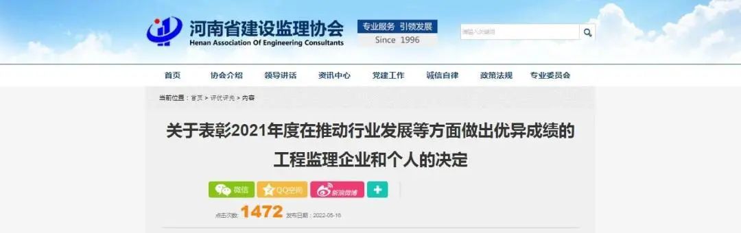 喜訊丨中興豫建設管理榮獲河南省優(yōu)秀工程監理企業(yè)及多項榮譽(yù)稱(chēng)號