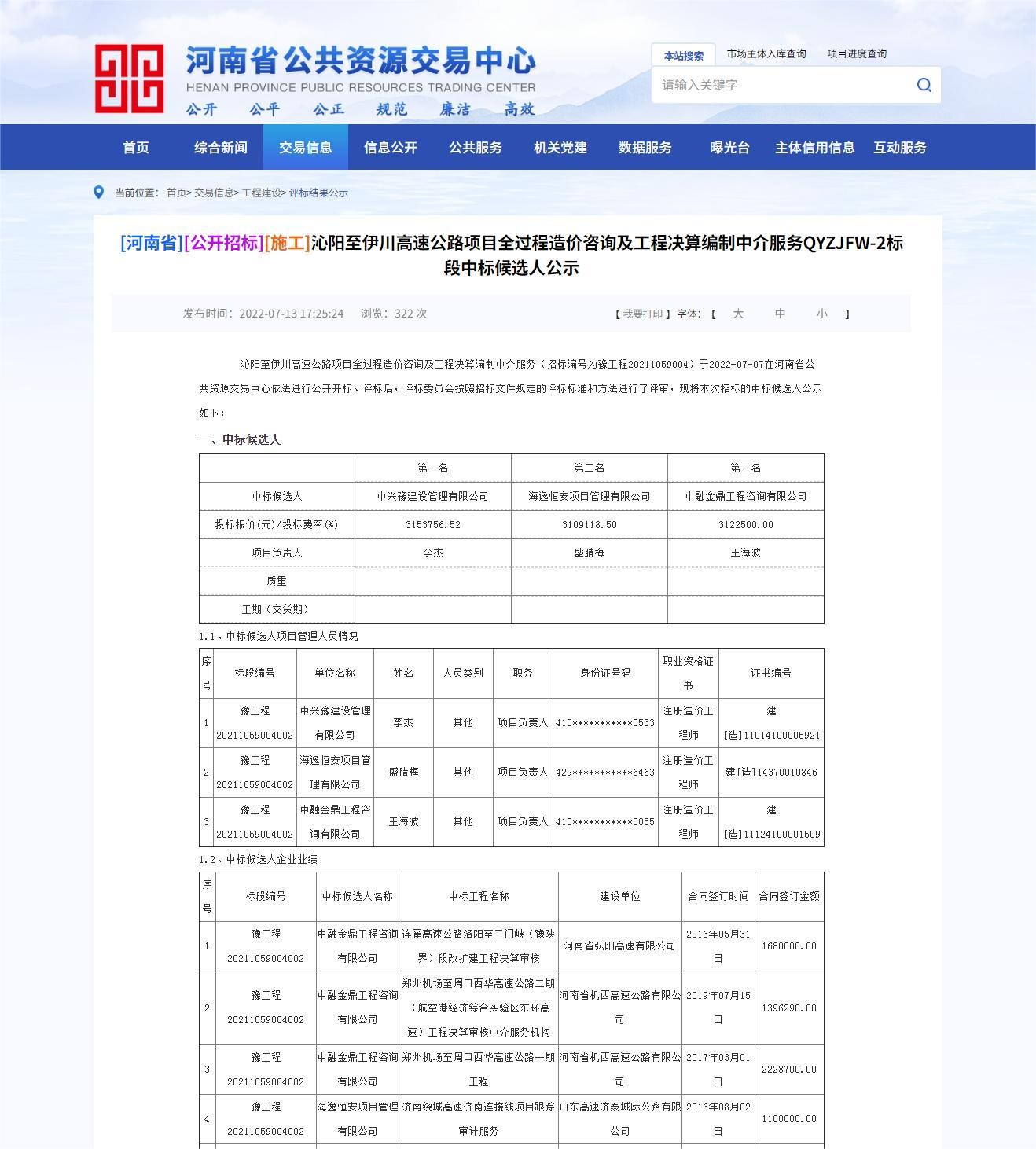 近日,中興豫建設管理有限有限公司在“沁陽(yáng)至伊川高速公路項目全過(guò)程造價(jià)咨詢(xún)及工程決算編制中介服務(wù)QYZJFW-2標段”招投標活動(dòng)中成功中標。