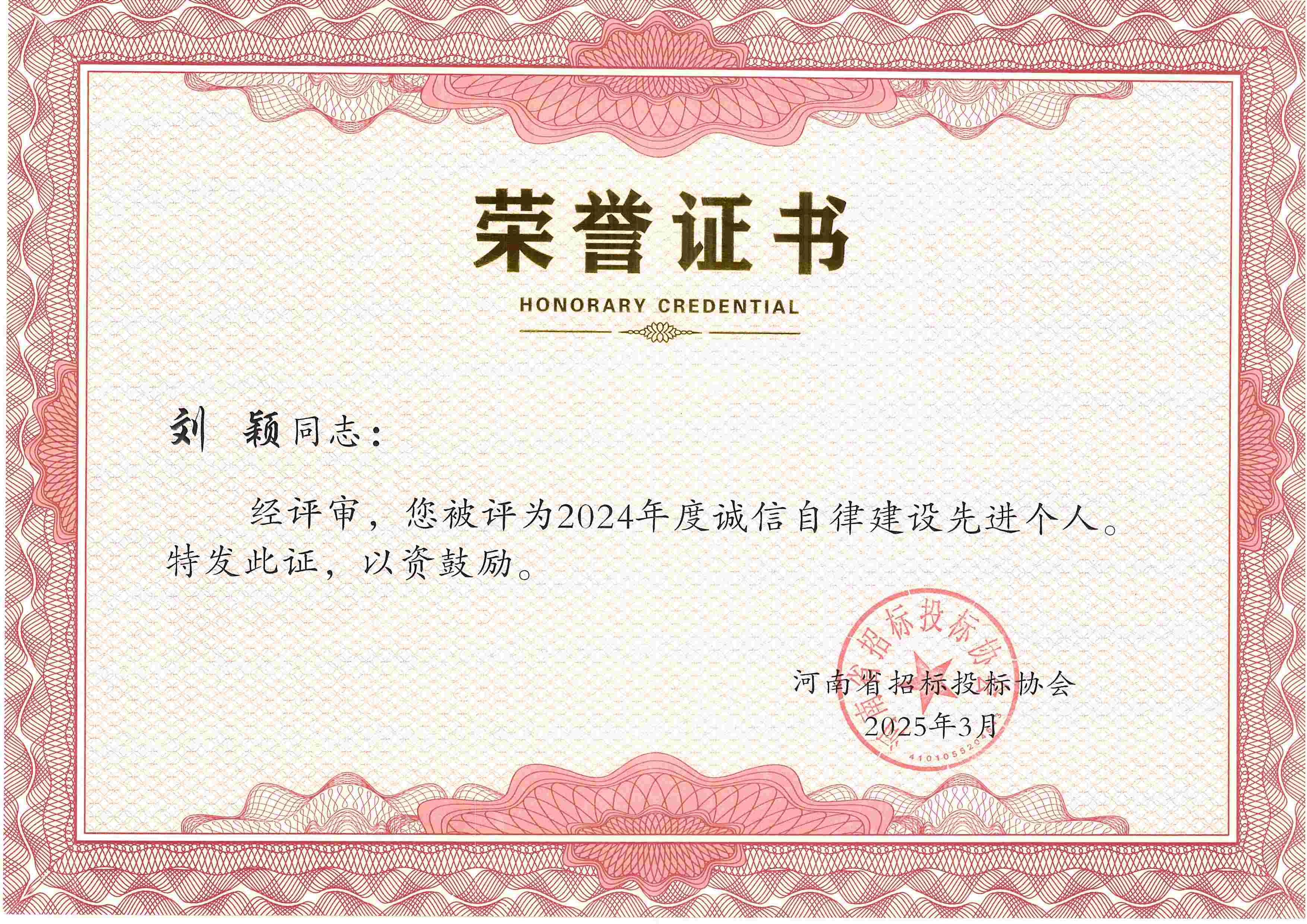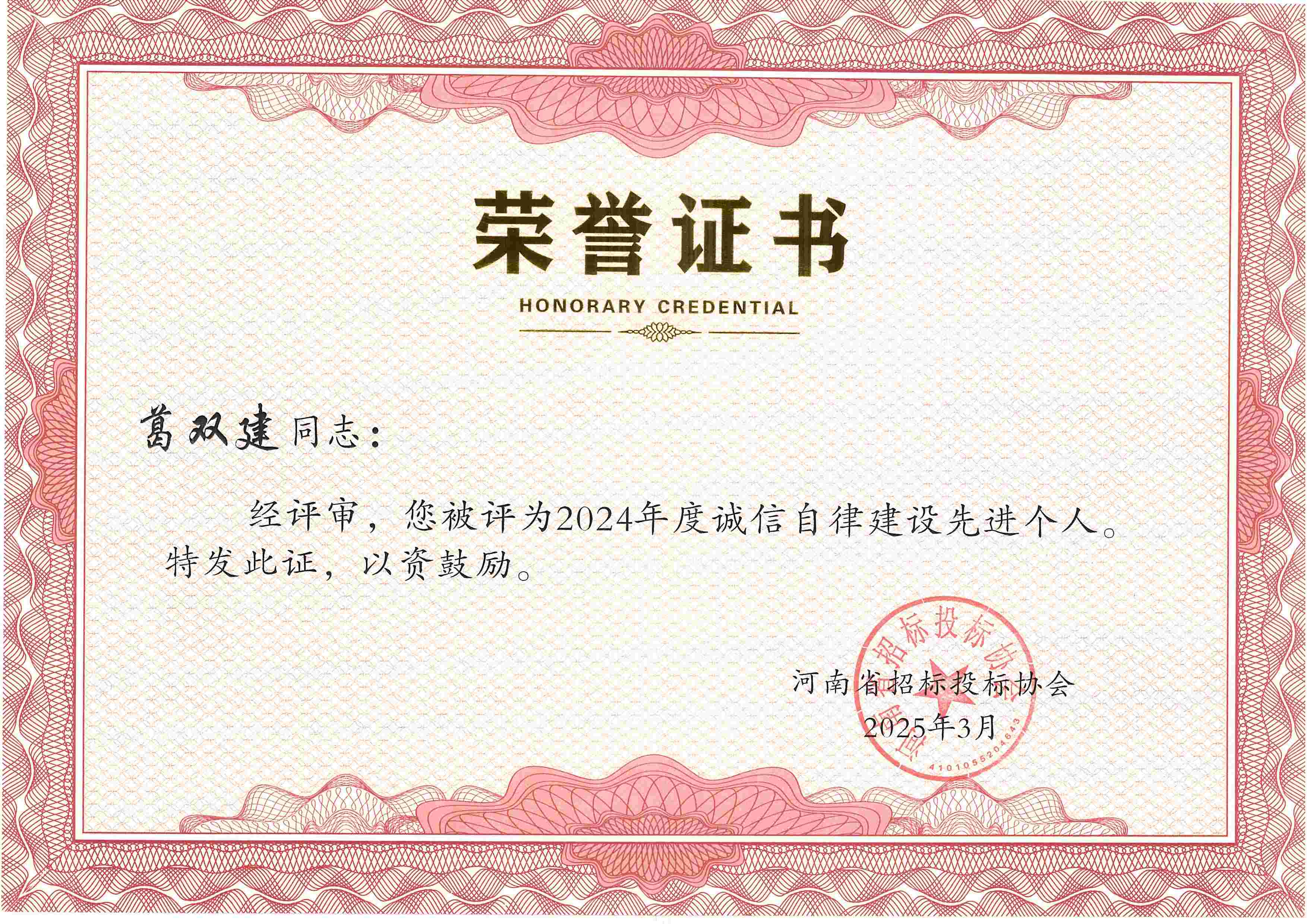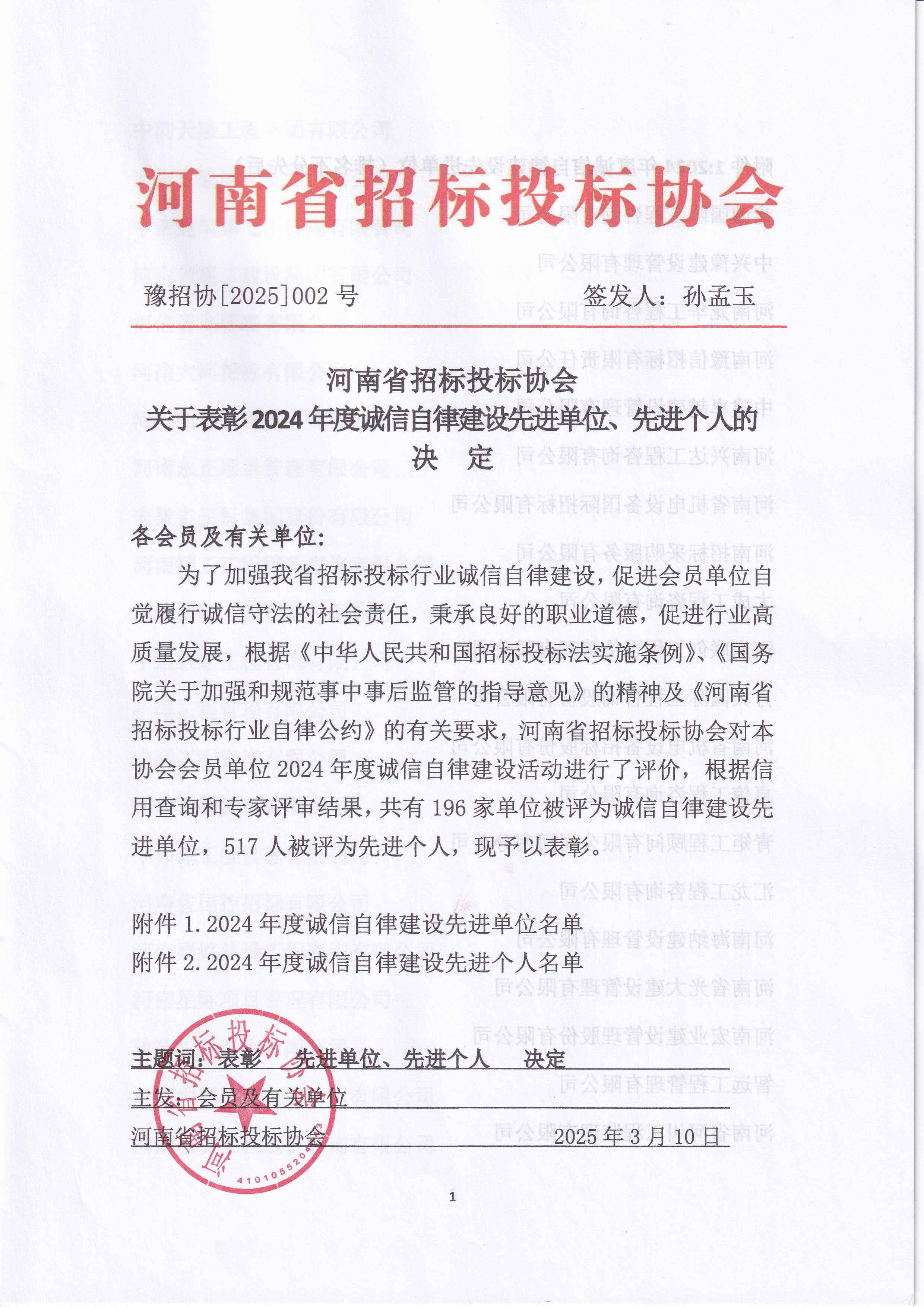 近日,河南省招標投標協(xié)會(huì )發(fā)布關(guān)于表彰2024年度誠信自律建設先進(jìn)單位、先進(jìn)個(gè)人的決定。其中,中興豫建設管理有限公司榮幸入選“2024年度誠信自律建設先進(jìn)單位”。