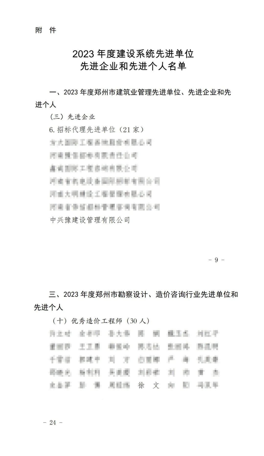 喜報 | 中興豫建設管理有限公司榮獲2023年度建設系統“先進(jìn)企業(yè)和先進(jìn)個(gè)人”榮譽(yù)稱(chēng)號