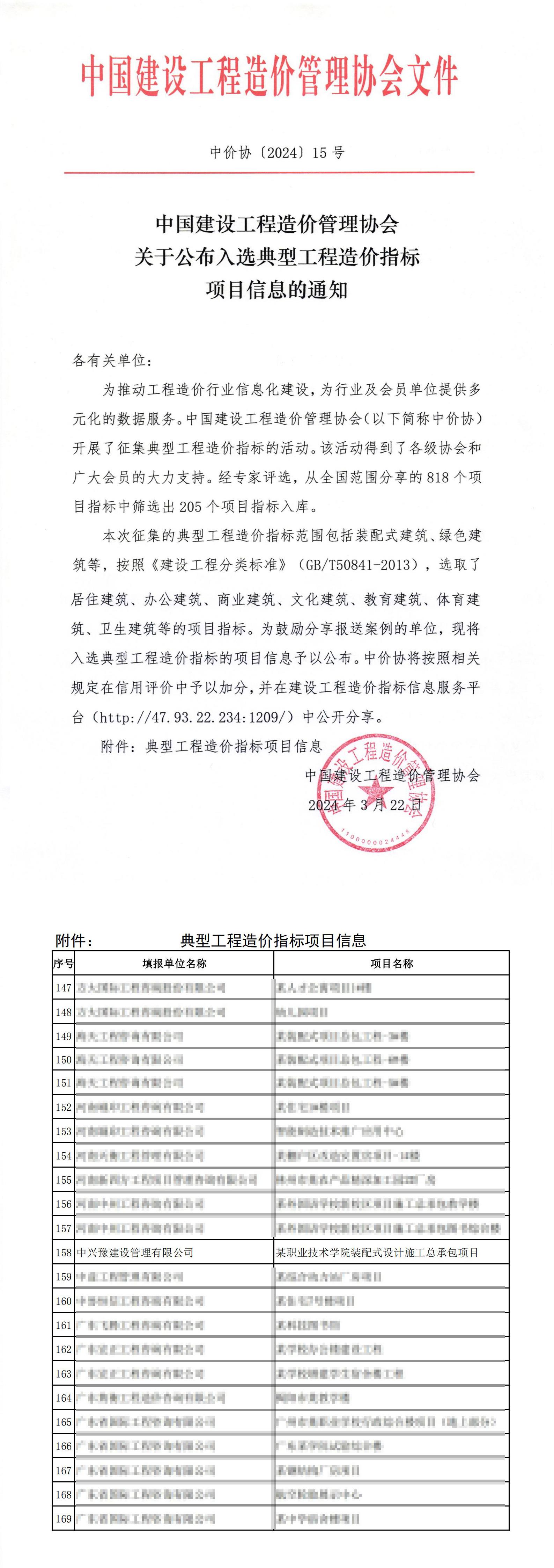 近日,中國建設工程造價(jià)管理協(xié)會(huì )關(guān)于公布入選典型工程造價(jià)指標項目信息的通知中,我公司的“某職業(yè)技術(shù)學(xué)院裝配式設計施工總承包項目"作為典型項目入選其中。
