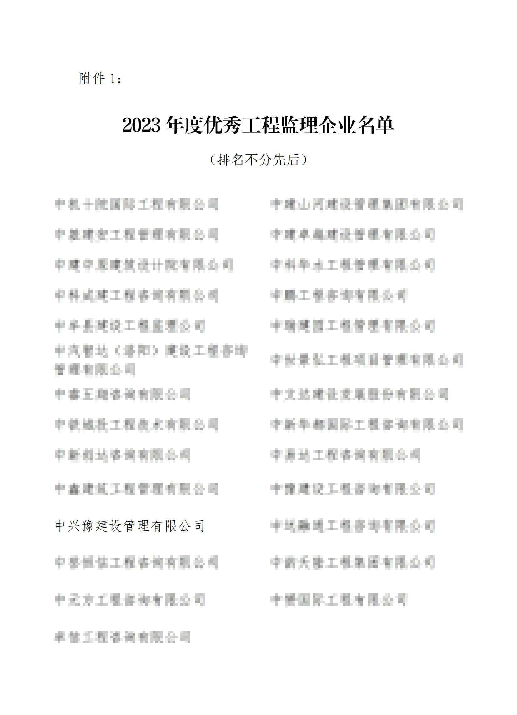近日,河南省建設監理協(xié)會(huì )公布了“關(guān)于2023年度會(huì )員單位考核結果的通知”。我公司榮獲河南省建設監理協(xié)會(huì )2023年度優(yōu)秀工程監理企業(yè)榮譽(yù)稱(chēng)號,并有35名員工憑借其良好的工作能力和突出的個(gè)人素質(zhì)經(jīng)考核獲得個(gè)人榮譽(yù)稱(chēng)號,優(yōu)秀總監理工程師13人,優(yōu)秀監理工程師13人,優(yōu)秀監理員9人。他們在工作中展現了敬業(yè)精神和超高的專(zhuān)業(yè)能力,為公司高質(zhì)量發(fā)展做出了重要貢獻。
