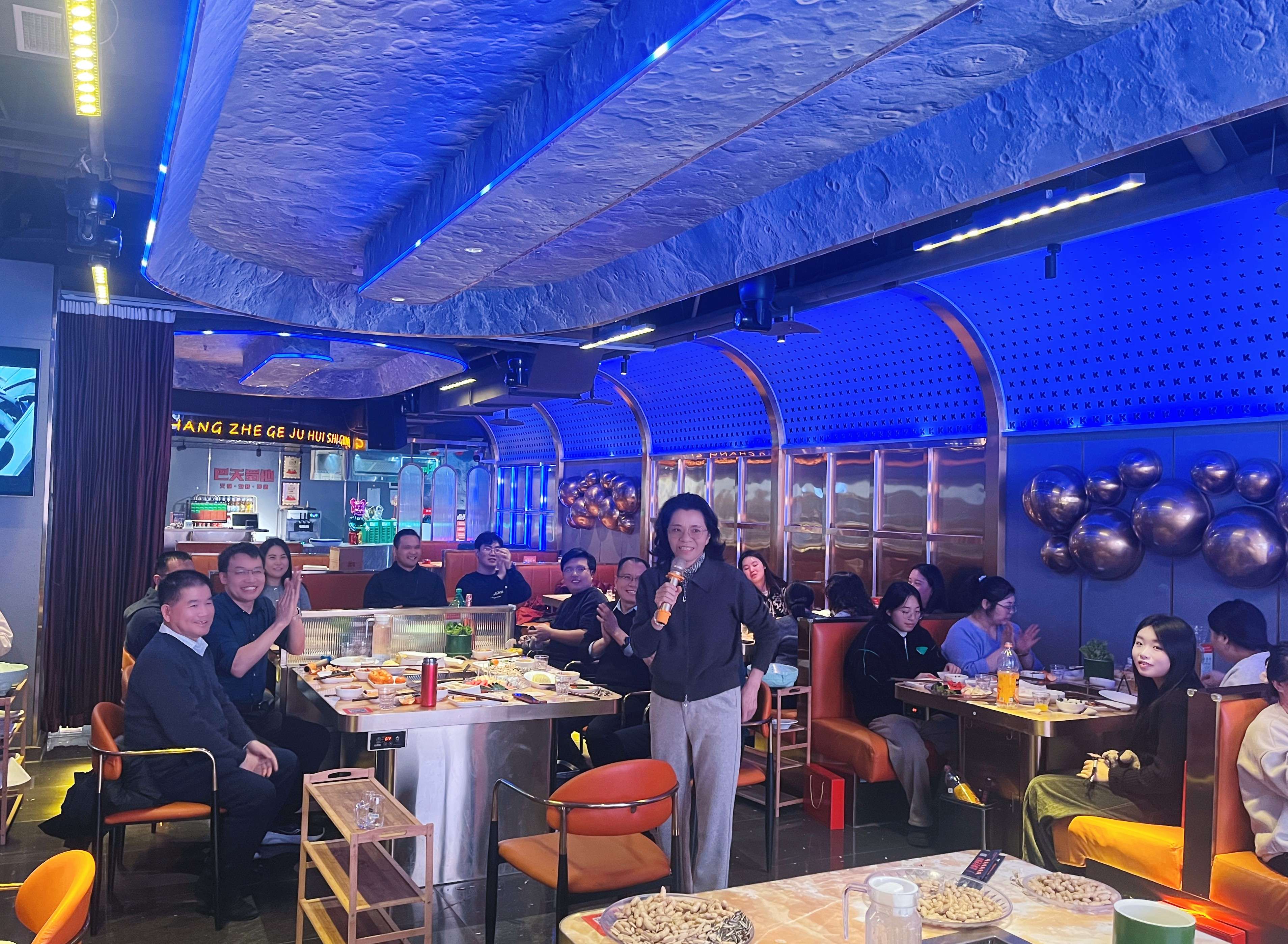 隨著(zhù)酒會(huì )進(jìn)程持續,精彩不斷涌現,酒席間,“數字炸彈” 游戲和歌曲演唱等節目表演陸續登場(chǎng),現場(chǎng)洋溢著(zhù)溫馨喜慶、暖意融融的氛圍。在聯(lián)歡酒會(huì )接近尾聲的時(shí)候,劉秒董事長(cháng)帶領(lǐng)大家共同合唱《自由飛翔》,同時(shí),向奮斗在全國各地的員工及其家屬送上新年的祝福,恭祝大家新年鴻運、身體健康、工作順利、幸福安康!迎新春聯(lián)歡酒會(huì )在悠揚的《明天會(huì )更好》的歌聲中圓滿(mǎn)落下帷幕。