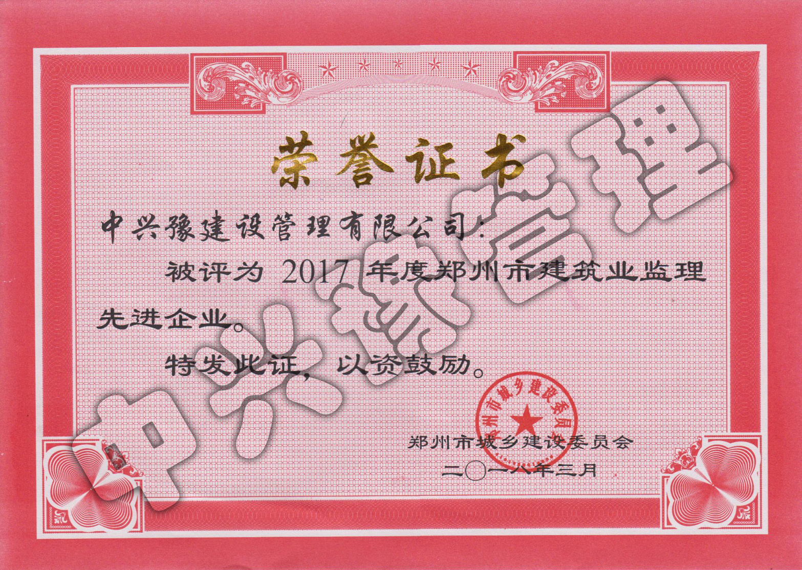 2017年度鄭州市先進(jìn)監理企業(yè)-公司榮譽(yù)