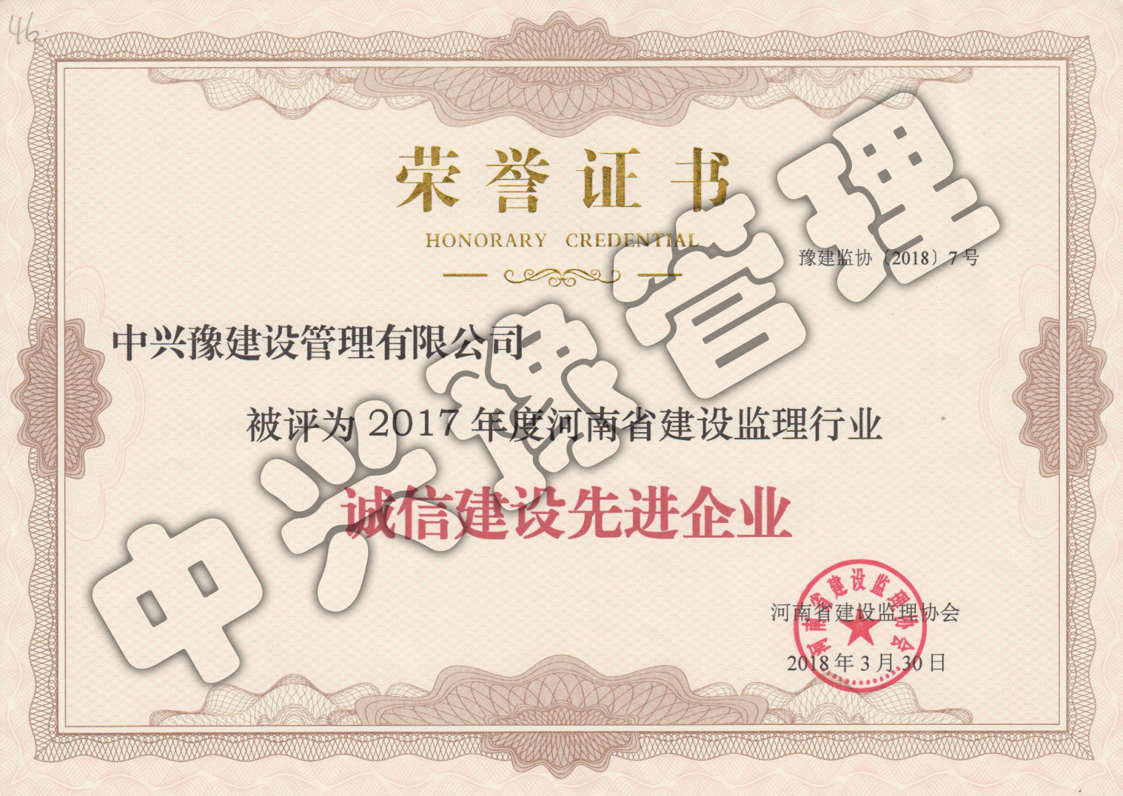 2017年度誠信建設監理企業(yè)-公司榮譽(yù)
