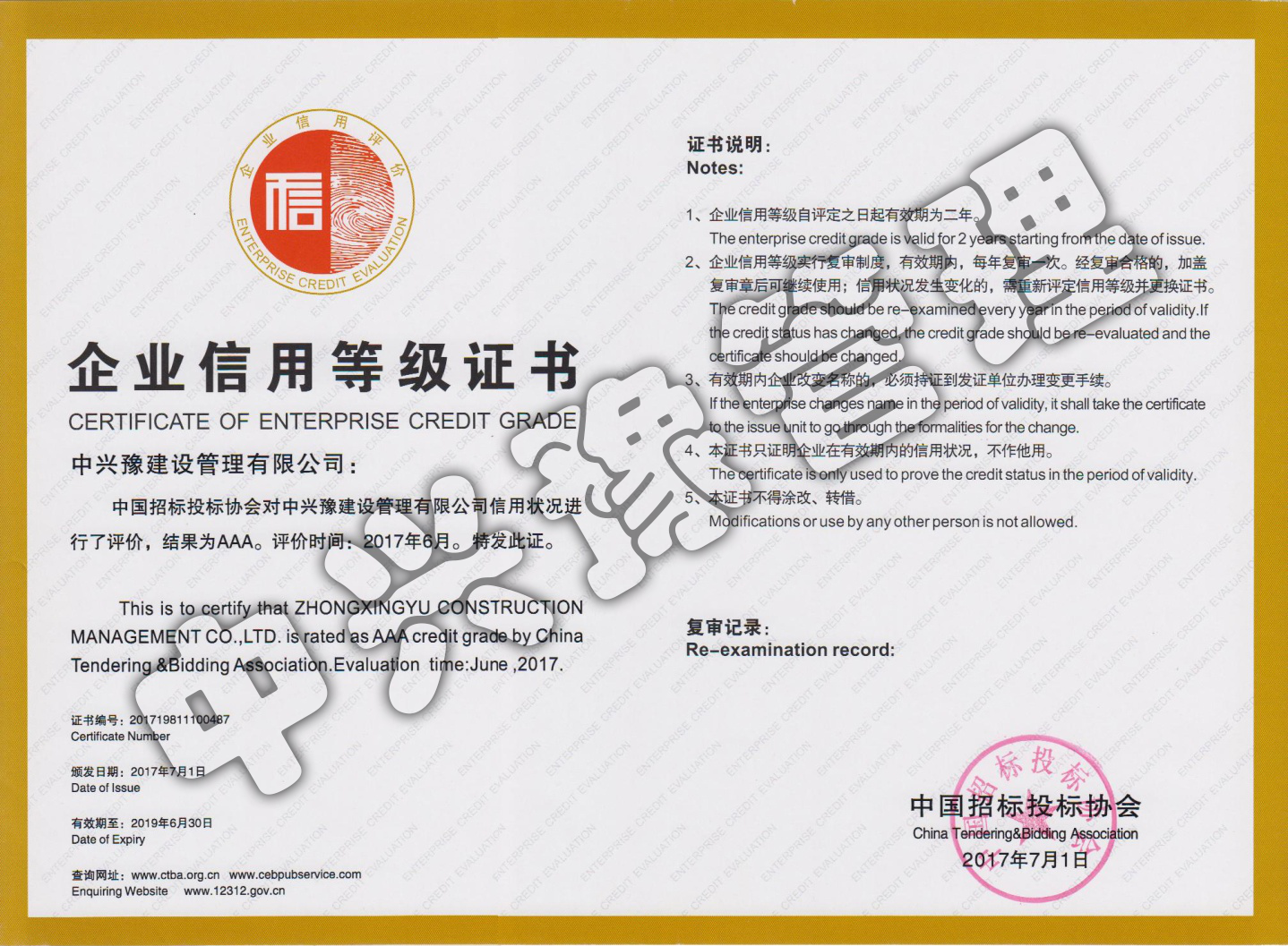 招標投標協(xié)會(huì )AAA信用等級單位-公司榮譽(yù)
