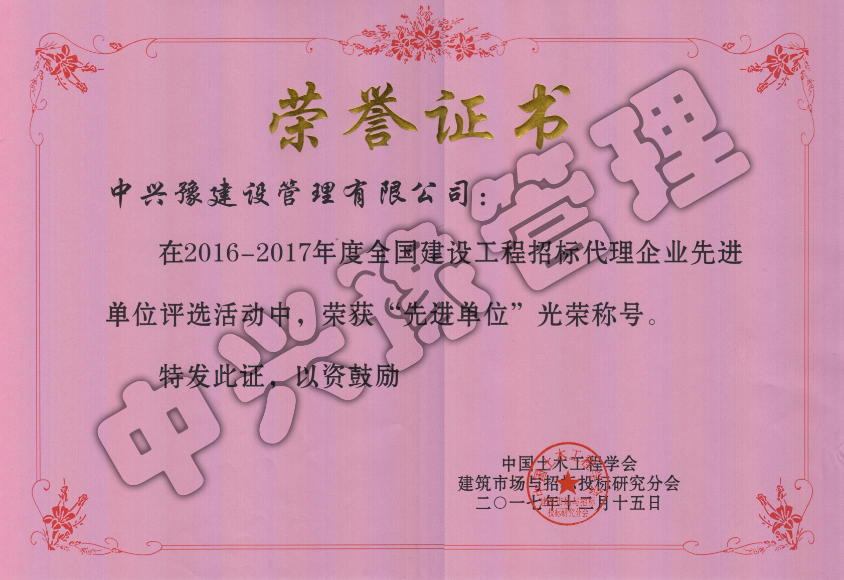 2016-2017年度全國招標代理企業(yè)先進(jìn)單位-公司榮譽(yù)