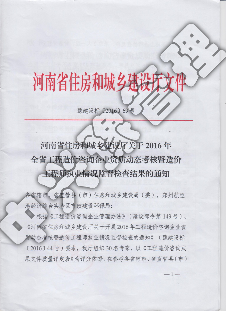 2016年河南省工程造價(jià)動(dòng)態(tài)考核優(yōu)秀企業(yè)-公司榮譽(yù)