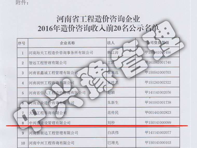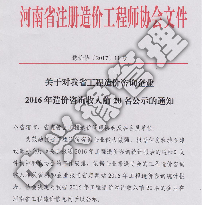 河南省工程造價(jià)咨詢(xún)企業(yè)收入20強-公司榮譽(yù)