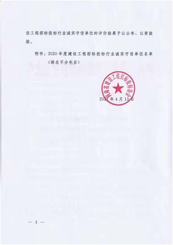 “2020年度建設工程招標投標行業(yè)誠實(shí)守信單位