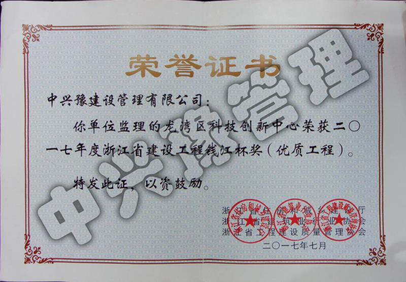 2017年浙江省錢(qián)江杯優(yōu)質(zhì)工程-獲獎項目