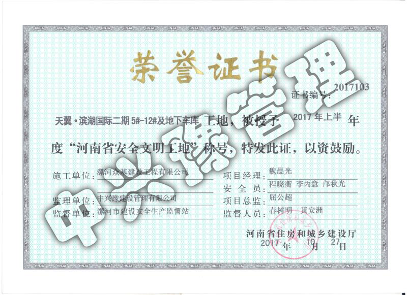 2017年上半年“安全文明工地”-獲獎項目