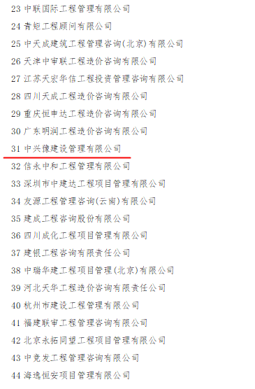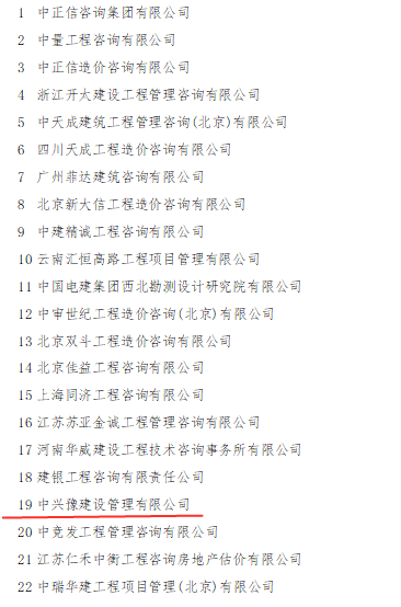 中興豫建設管理有限公司入圍2020年全國工程造價(jià) 咨詢(xún)企業(yè)專(zhuān)業(yè)業(yè)務(wù)收入百強排名!